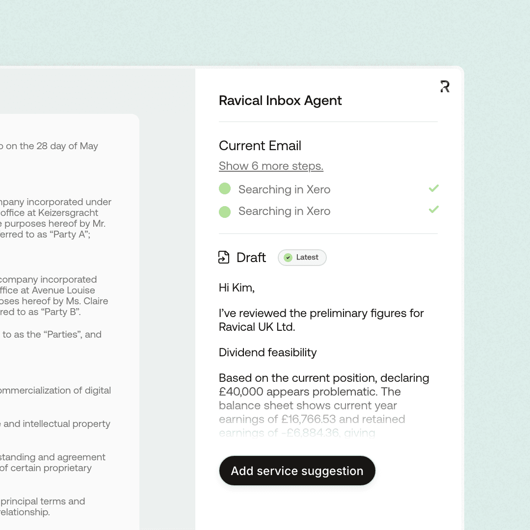 Cut email turnaround while maintaining quality. Smart drafting and context-aware suggestions help your team handle client communication efficiently without sacrificing the personal touch.